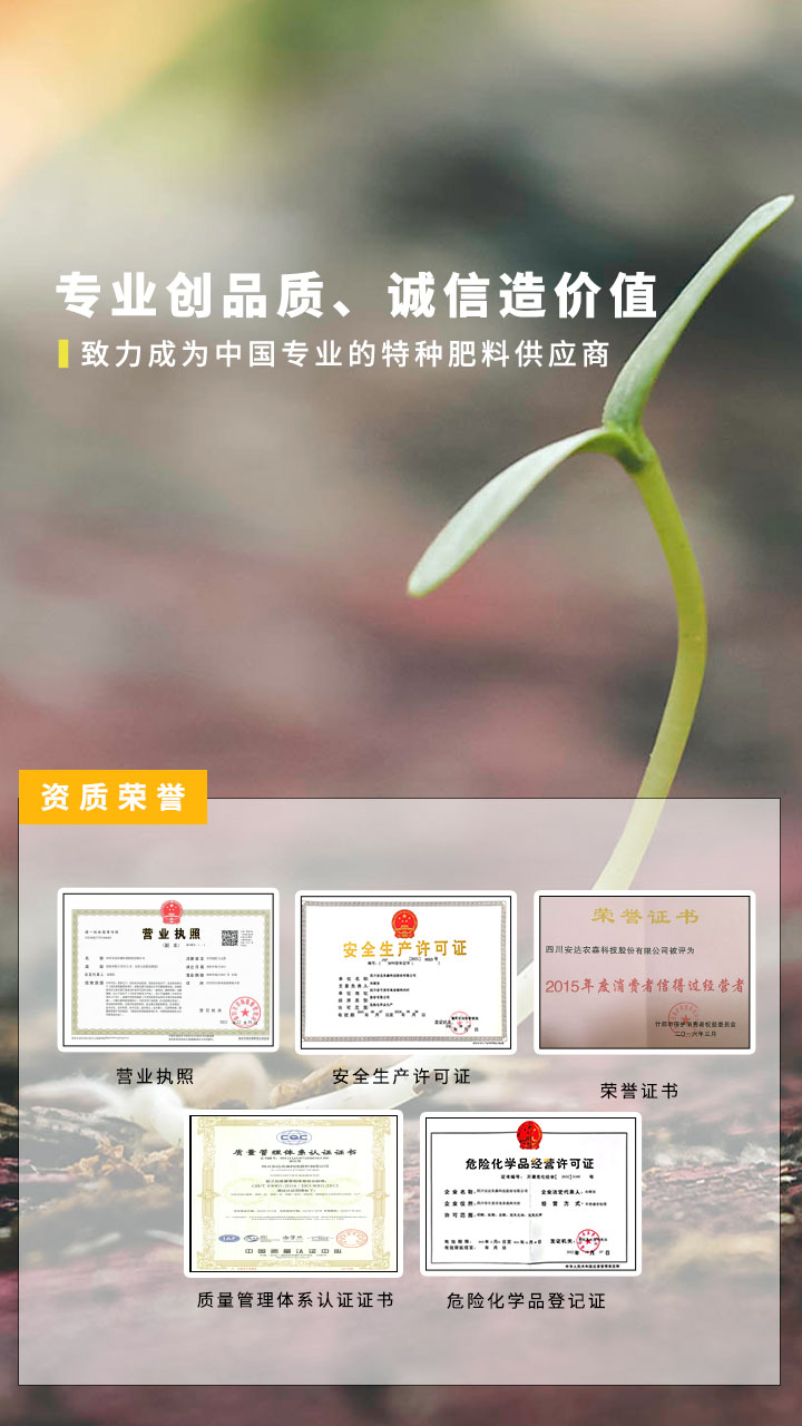 四川安達農森科技股份有限公司 版權所有(2021) 根據國家相關法律法規,單位、個人購買相關危險化學品應當具備的資質、資格條件及個人不得通過互聯網購買劇毒化學品和易制爆危險化學品。